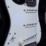 Left-handed 2014 Squier Stratocaster in sleek Black Metallic. Perfect for versatile play and iconic sound. Ideal for both beginners and seasoned guitarists seeking quality and style.