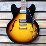 Discover rich tones with the used Epiphone ES 335 Electric Guitar. Iconic semi-hollow design, perfect for versatile sound. Includes a protective hardshell case for safe transport. Ideal for musicians seeking quality and style.